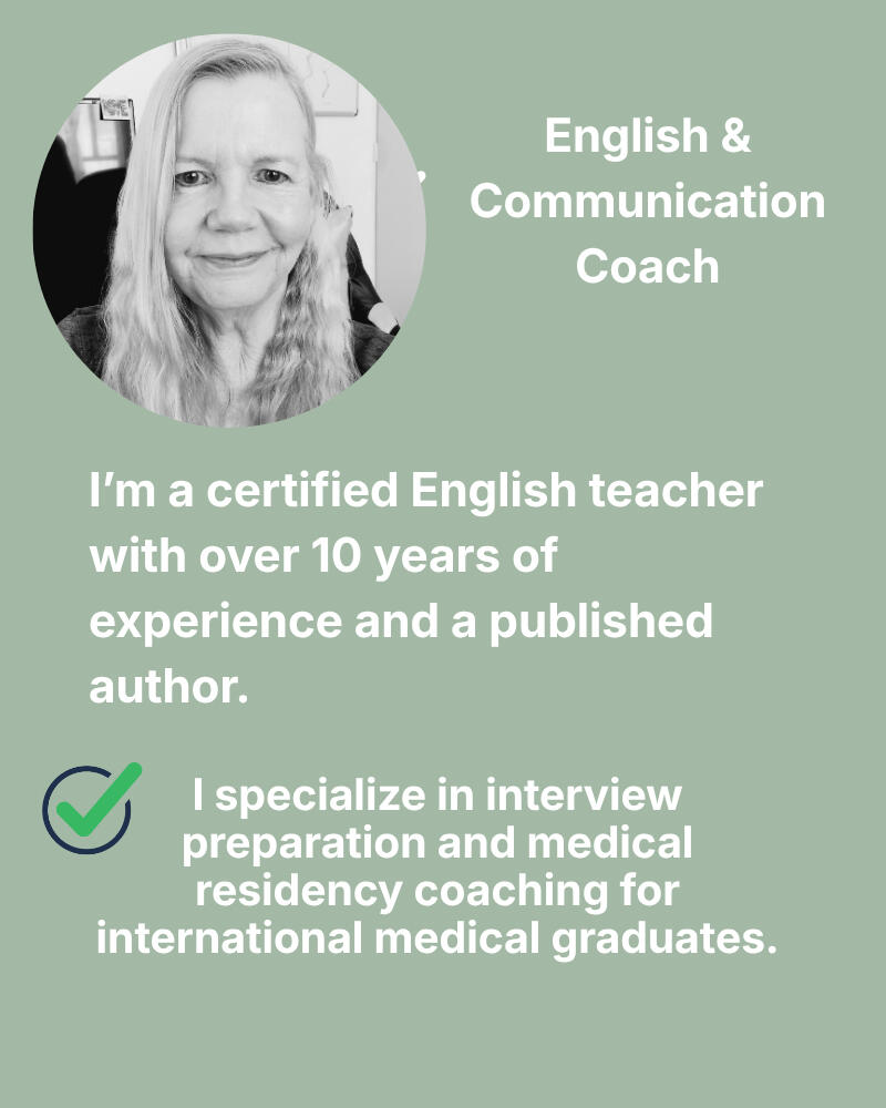Targeted support for international medical graduates preparing for residency. I focus on helping you communicate clearly, professionally, and with confidence at every stage of the process.• Mock residency interviews and feedback